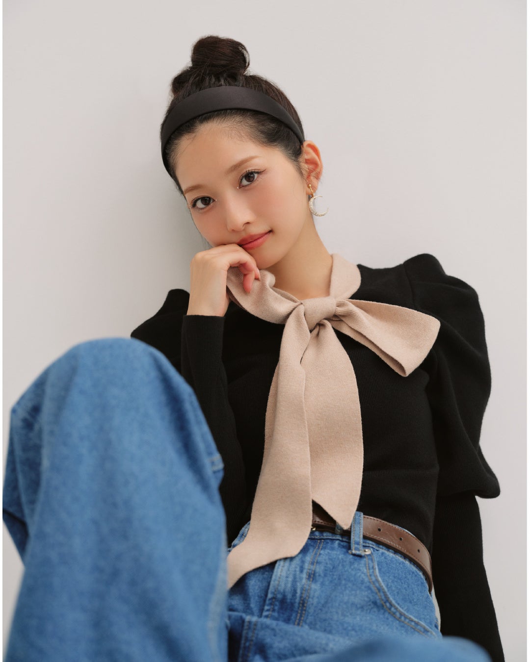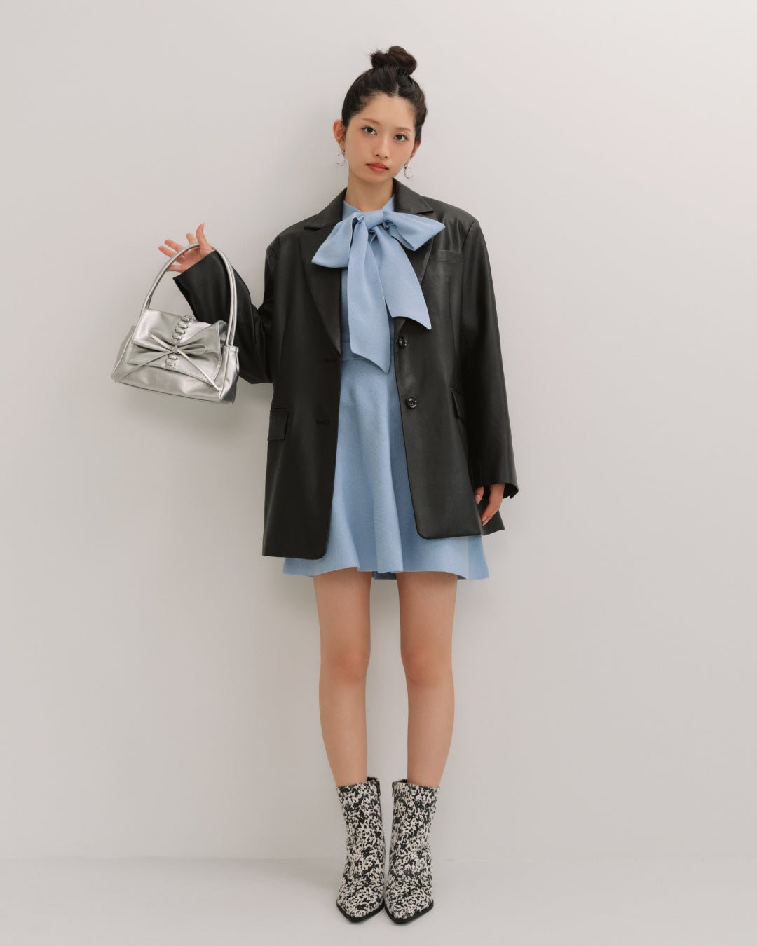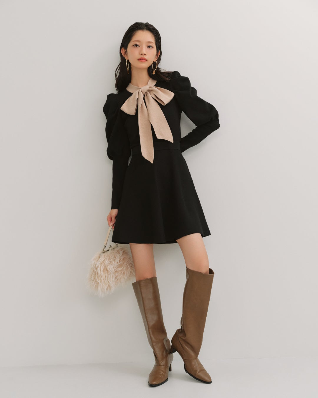 過去好評だったボウタイ付きのニットセットアップおよびニットワンピースのデザインをアップデートしたスペシャルなアイテムです。