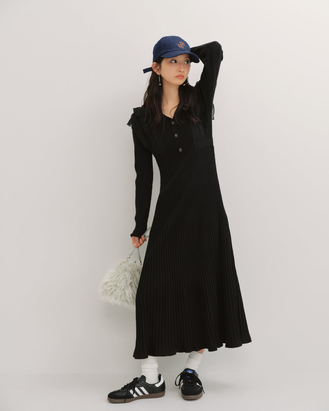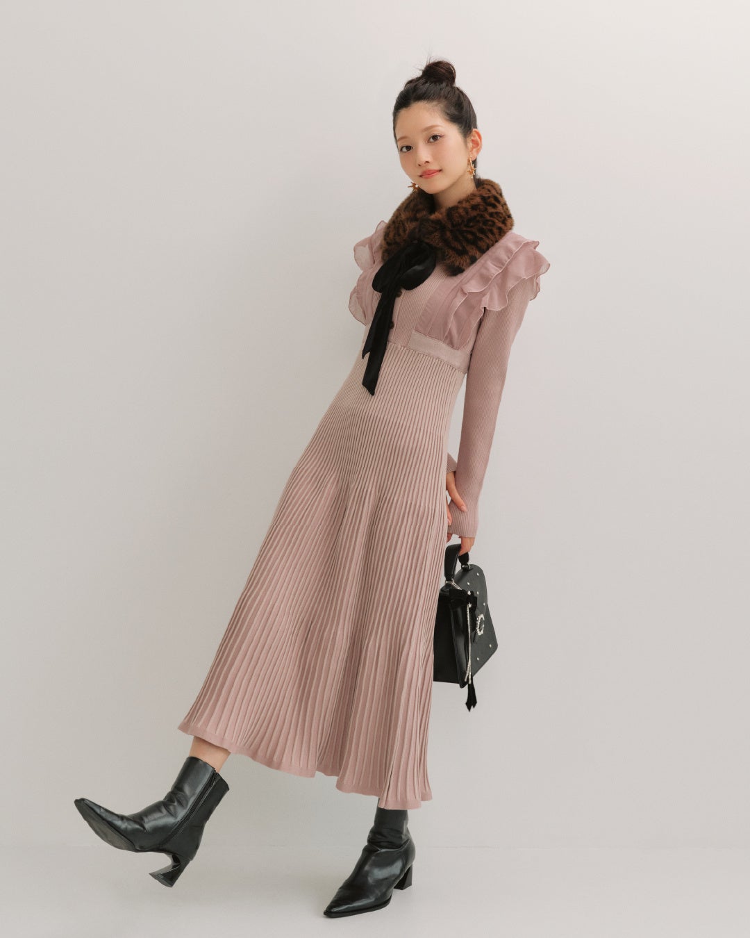 【NEW YEAR'S SPECIAL ITEM】シフォンドッキングニットワンピース