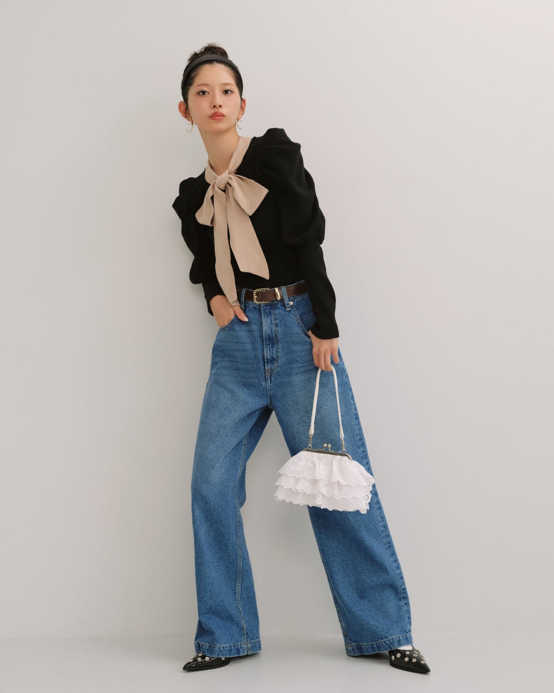 華やかで春にもぴったりな【BLU】、ボウタイとボディがバイカラーでシックで女性らしさのある【GRY】、クラシカルな雰囲気の【BLK】の3色をご用意しました。