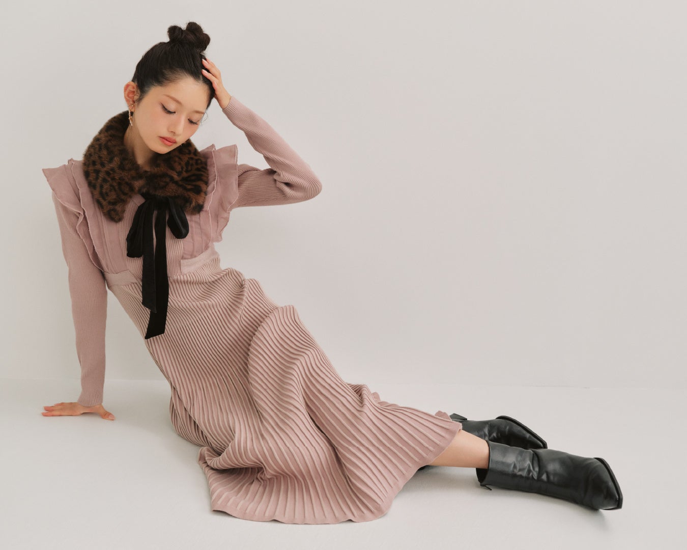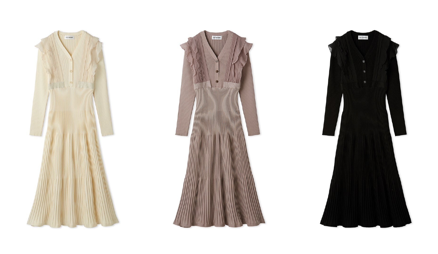 人気のデザインをアップデートしたボウタイニットセットアップとドッキングニットワンピースの2種を数量限定で発売