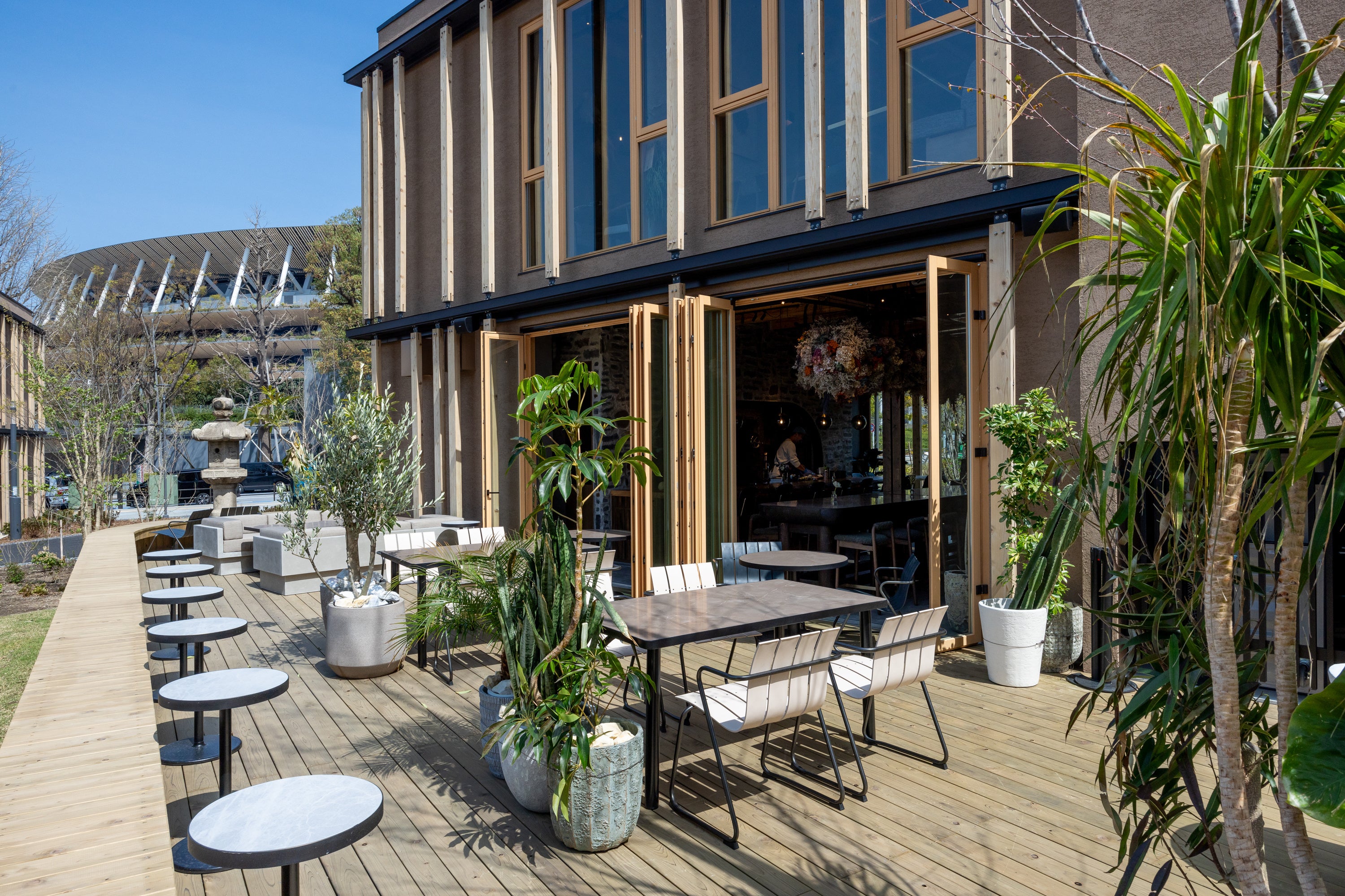 レストランの繊細さとビストロの気軽さを併せ持つ、公園の中にある⾃然豊かな⼀軒家レストラン。ランチはご家族や気の知れた友⼈と気ままに楽しめる薪⽕調理を活かした御膳などをラインナップ、ディナーは枠にはまらないビストロ料理をカジュアルにお楽しみいただけます。1階にはシェフが⽬の前で調理するシェフズカウンターや、⼼地よい喧騒の中で賑やかに楽しめるダイニングテーブル。2階にはテーブル席やBARカウンター、カーテンで区切られたプライベートな個室も。料理は国内外の星付き店で腕を磨き、natuRe waikiki のエグゼクティブシェフを務める⼩川 苗が監修したビストロメニューをご⽤意します。