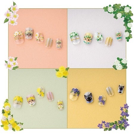 貼るだけで簡単に、お花の妖精猫さんのネイルアートが指先に完成するネイルシールです。