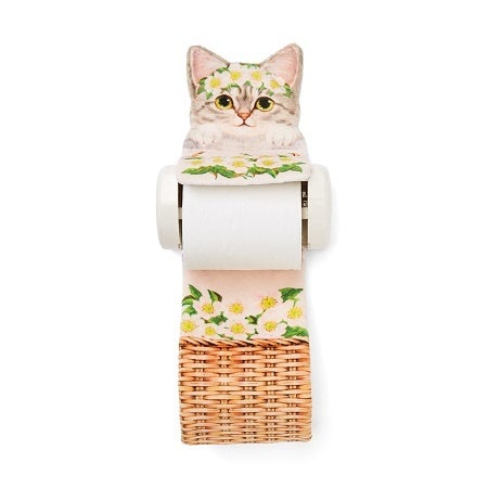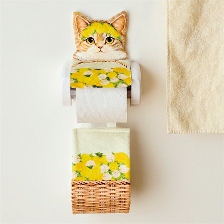 お花と猫の癒やしの空間を演出する、ペーパーストッカー&タオル