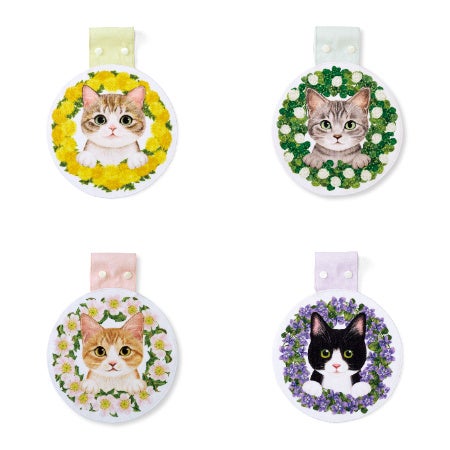 お花と遊んでいるような可憐な猫たちに癒やされる「お花の中から猫が見守る フラワーリースタオル」と「お花をつんで遊びに来たよ 猫のペーパーストッカー」がフェリシモ「猫部™」から新登場