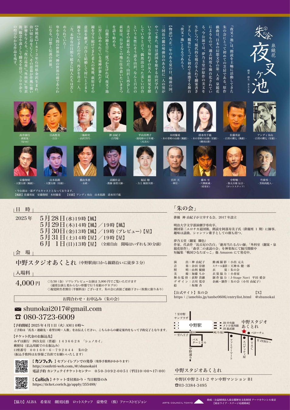 朗読の〈朱の会〉初の芝居公演!泉鏡花を夢乃玉堂が翻案書き下ろし!