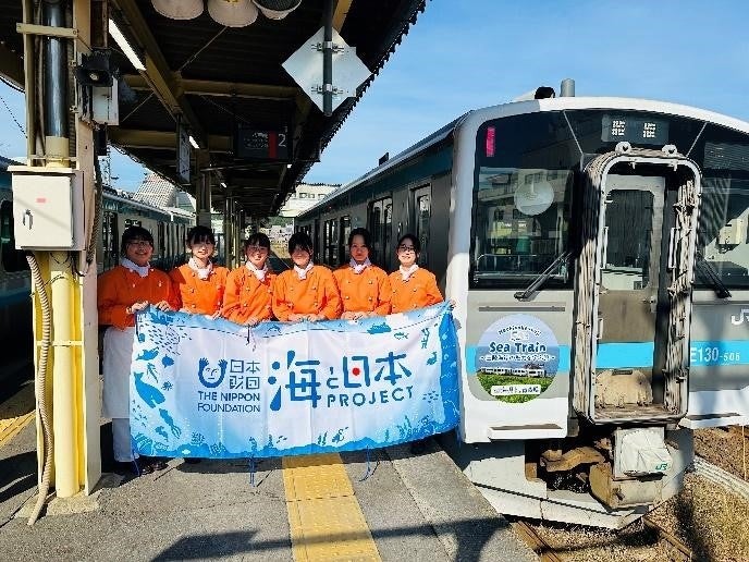 ・開催概要:三陸沿岸を走る八戸線は美しい車窓スポットを持つ魅力的な路線ですが、乗客数が低迷し、その魅力が十分に伝わっていません。魅力を発信するためには、地域の人々がその魅力に気づき、特に高校生など若い世代を巻き込んで幅広い世代に訴える必要があります。地元の高校生が三陸の海の魅力を調査し、その成果物を活用して特別列車を運行するとともに、久慈駅で観光施設での見学・体験イベントを行いました。地元高校生が、三陸の海の魅力を自分たちで作った「お弁当」と「パンフレット」で表現し、乗車していただいた皆さまに発信を行う事業です。「海と日本プロジェクト」が進める、海の状況を伝え海の未来へつないでいくための1つのイベントとして、参加した皆さまからも広げてほしい、という思いをのせてこの列車が走ります!今回はこの列車でしか味わえない、体験できない「海」のプログラムでお届けしました。