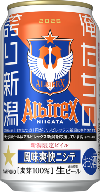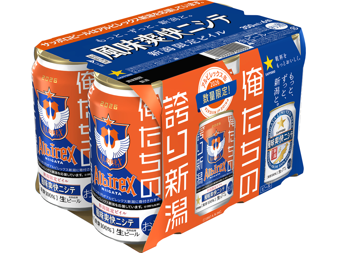 サッポロホールディングスのグループ企業であるサッポロビール(株)は「新潟限定ビイル 風味爽快ニシテ アルビレックス新潟缶」を、2026年2月10日(火)に新潟県内で数量限定発売します。