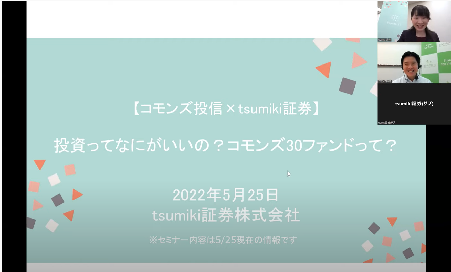 【tsumiki証券】セゾン投信、コモンズ投信と初心者さんに向けたコラボセミナーを開催!