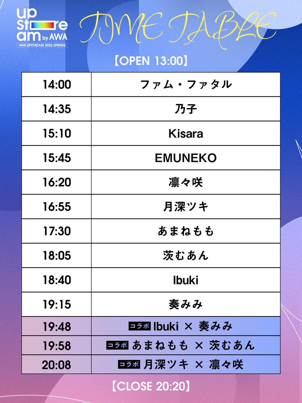 『AWA UPSTREAM 2025 SPRING』タイムテーブル発表!