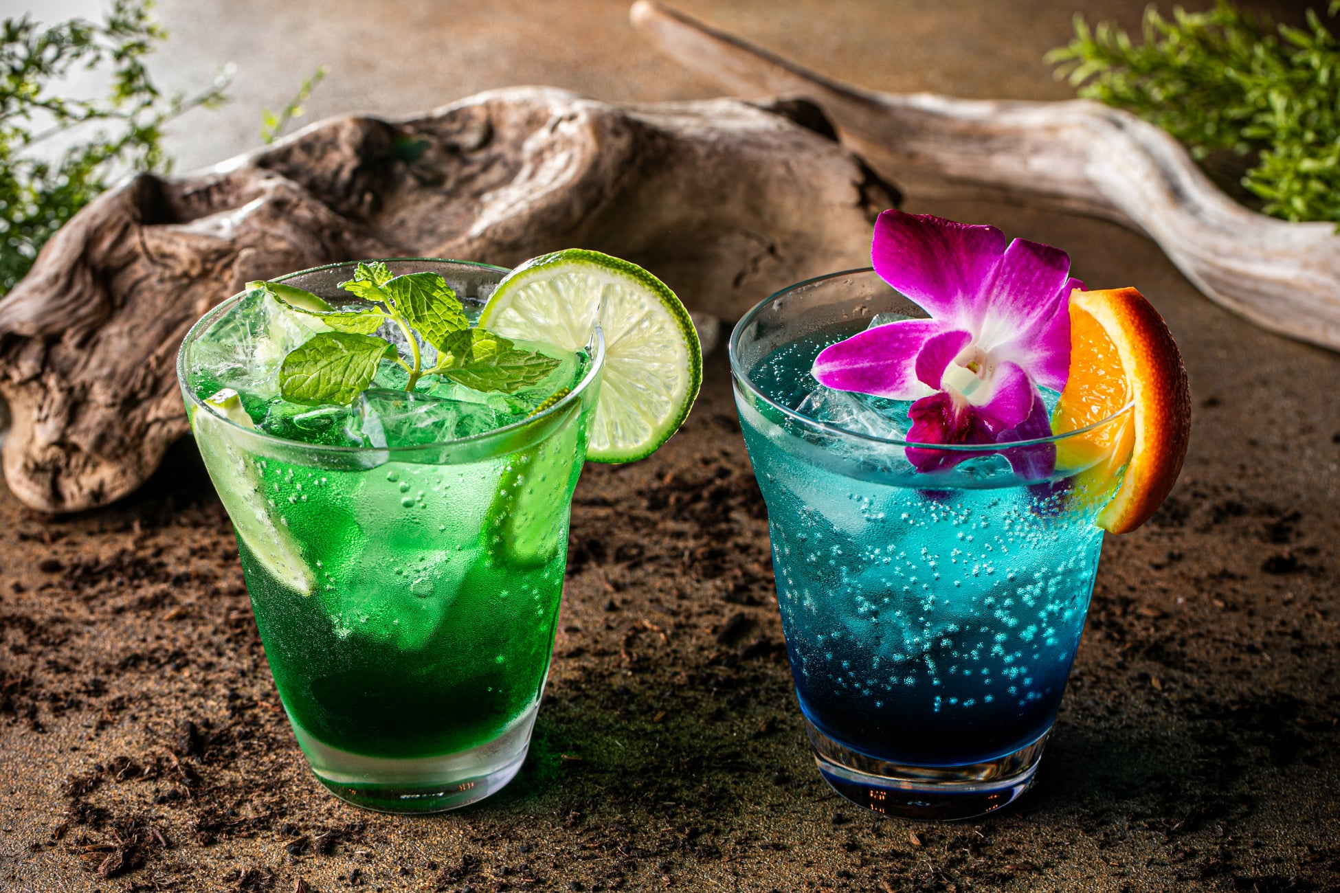 緑豊かなジャングルをイメージした、見た目にも色鮮やかなカクテル。ラム酒とミントのほのかな香りと相まって、まるで生命あふれる古代の森を感じさせるカクテルや、深く神秘的な海をイメージしたドリンクでぜひリフレッシュを。