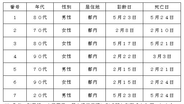 都内で新型コロナウイルスに感染した方が死亡されましたのでお知らせします。