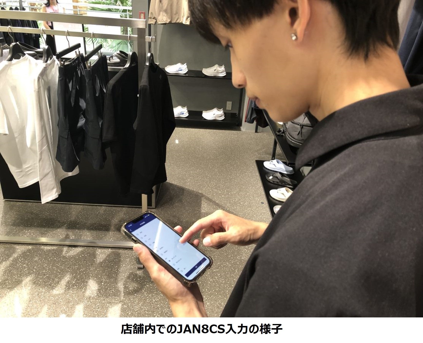 JAN8 CSではJANコードを読み取り、アプリに性別や年齢、試着や購入の記録のほか、購入しなかった理由や気になった点などを入力してデータ化する。個人情報は取得しない。