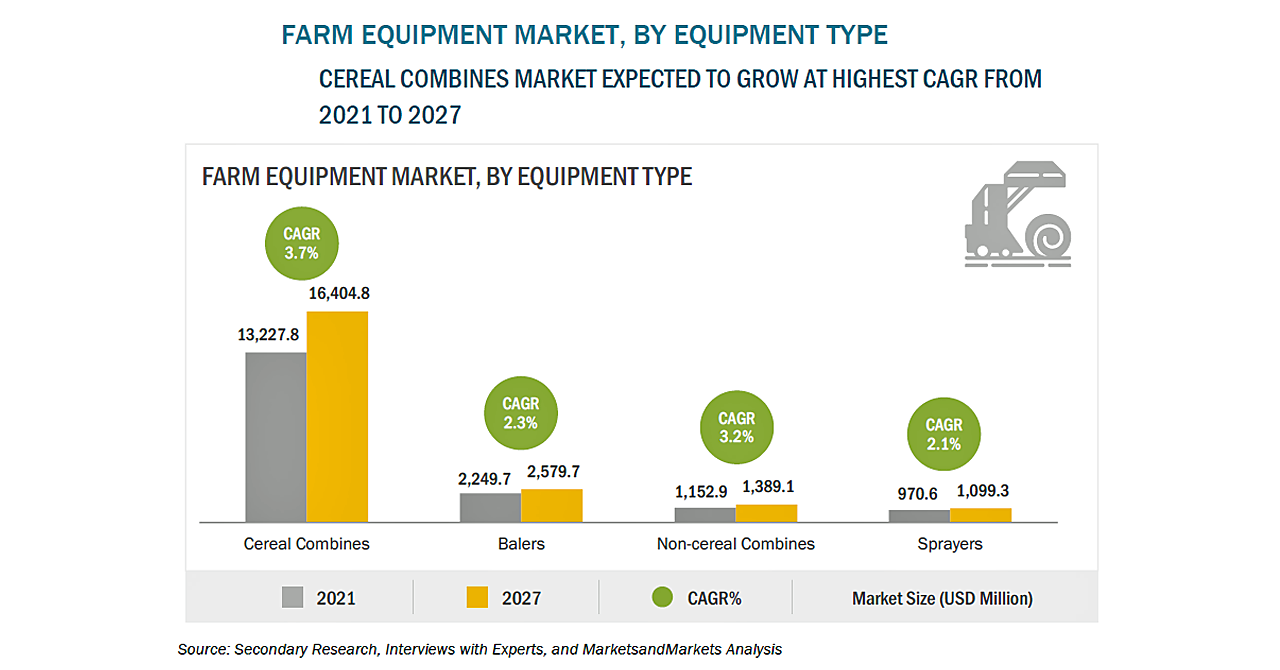農機具の市場規模、2027年に1,260億米ドル到達予測