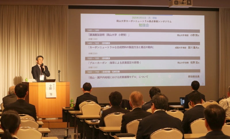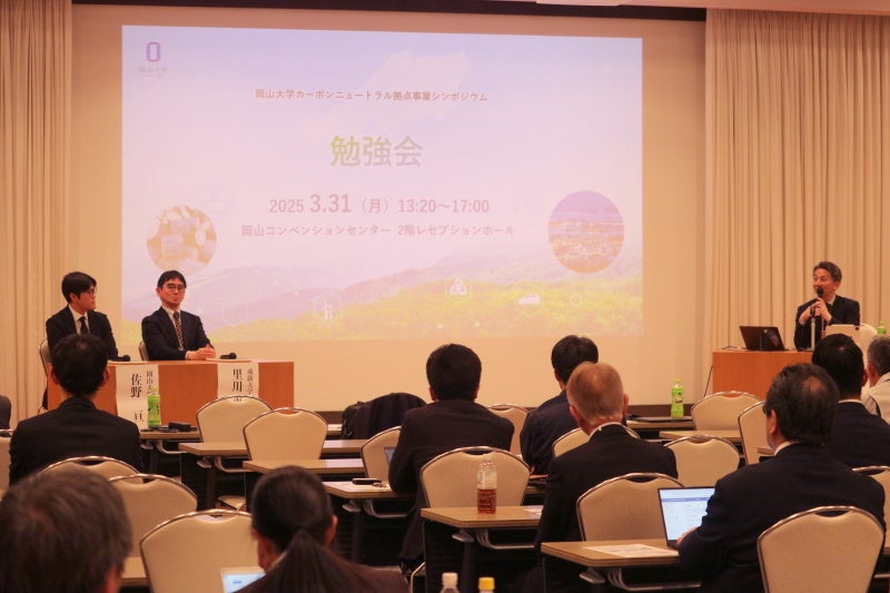 国立大学法人岡山大学(本部:岡山市北区、学長:那須保友)は2025年3月31日、岡山コンベンションセンターにおいて「岡山大学カーボンニュートラル拠点事業勉強会」を開催しました。自治体や企業関係者、学術機関などから約80人が参加し、対面形式で活発な議論が交わされました。