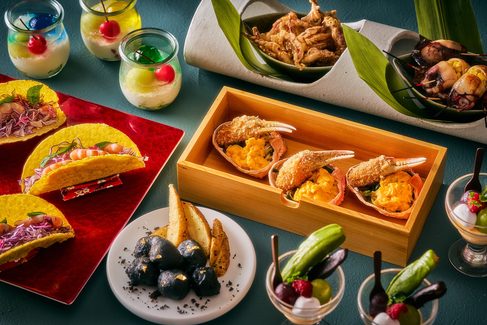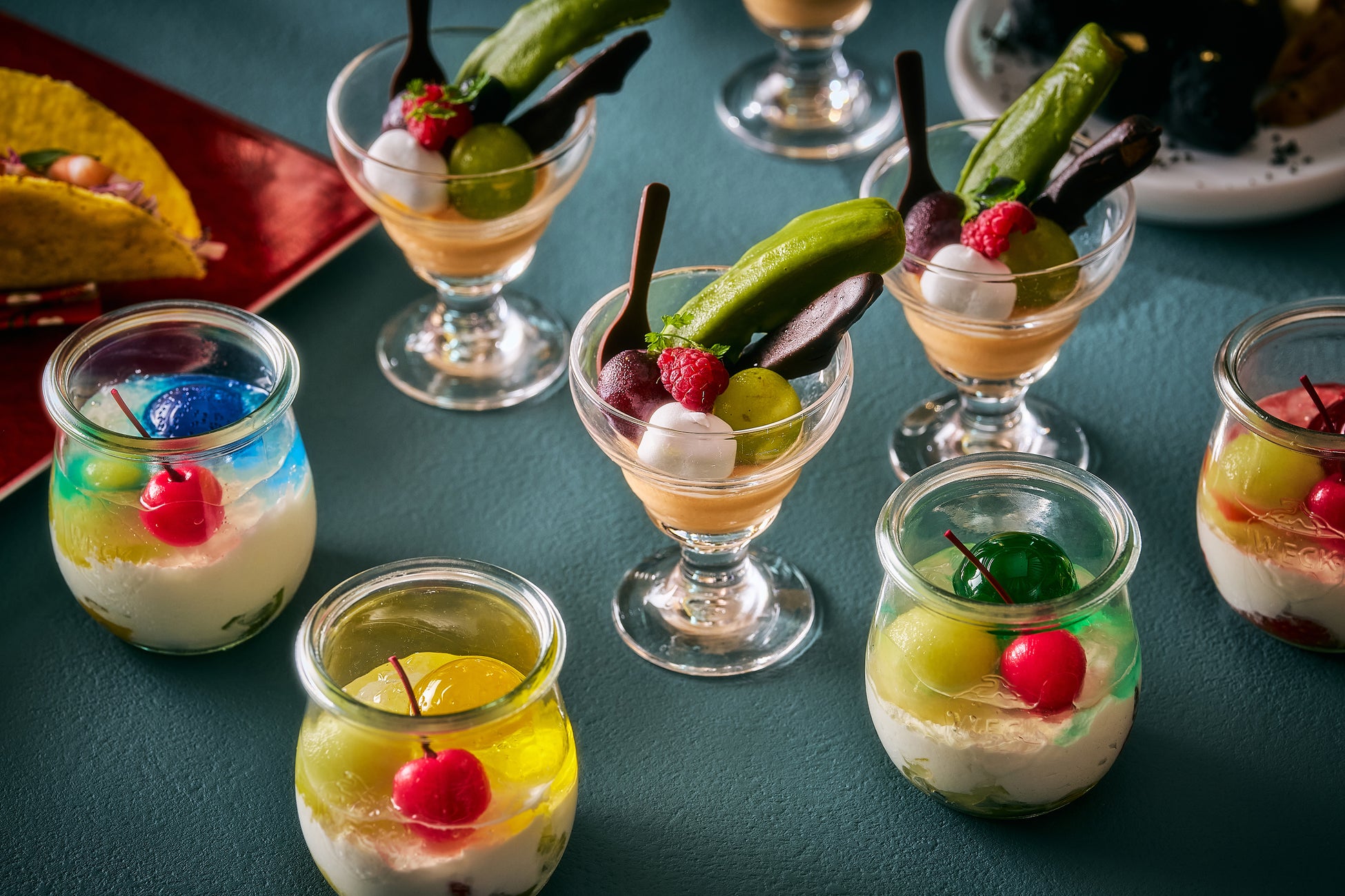 当日のイベントでは、“ラグジュアリーな夏祭り”をテーマにシェフやバーテンダーが考案したメニューをお選びいただけます。蟹甲羅に盛り付けた焼きそばやクリームソーダのヴェリーヌ、涼を感じるかき氷やアイスのカクテルなどをダンスと共にお楽しみいただけます。