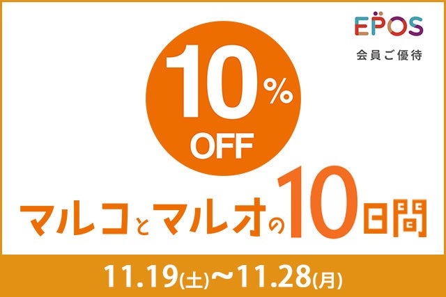 丸井グループ(東京都中野区、代表取締役社長:青井 浩)は、2022年11月19日(土)~11月28日(月)の10日間、マルイのネット通販「マルイウェブチャネル」および、マルイ・モディ全店にて、エポスカード会員ご優待キャンペーン『マルコとマルオの10日間』を開催いたします。期間中、エポスカードのクレジットでのお支払いで、10%OFFにてご利用いただけます。