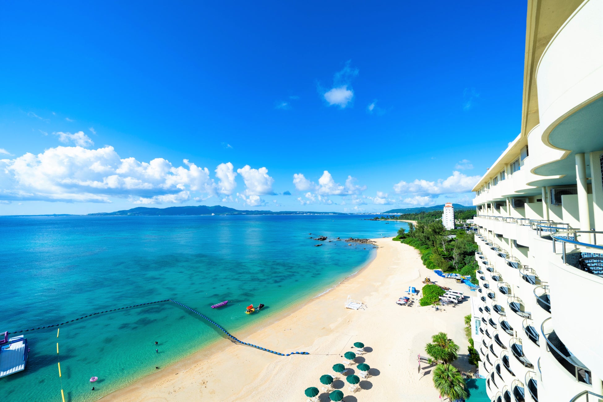 沖縄県名護市の入口、喜瀬ビーチに建つオーシャンフロントリゾートです。沖縄自動車道許田ICより車で約5分。北部観光の拠点としても便利です。