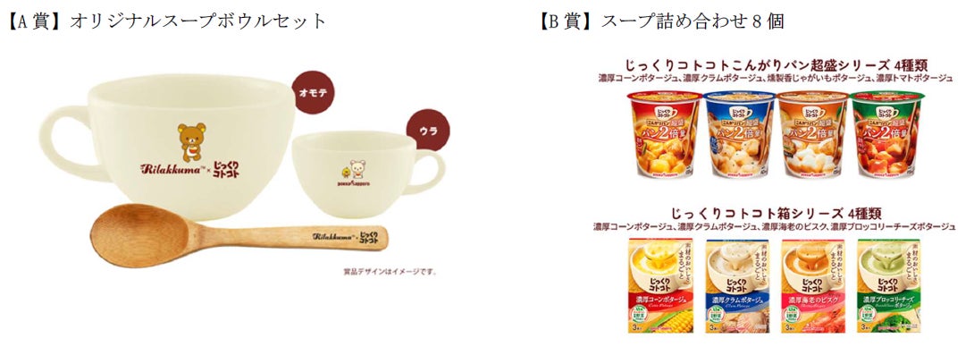 これから年末年始を中心に、寒さが一段と厳しくなりまた何かと慌ただしくなるシーズンを迎えます。当社ではそんなシーズンにぴったりの“とろ~り濃厚”で温かくてほっとするスープ「じっくりコトコト」ブランドと、ゆるりと親しみのある人気キャラクター「リラックマ」がコラボレーションし、抽選で総計300名様に賞品が当たるプレゼントキャンペーンを実施します。