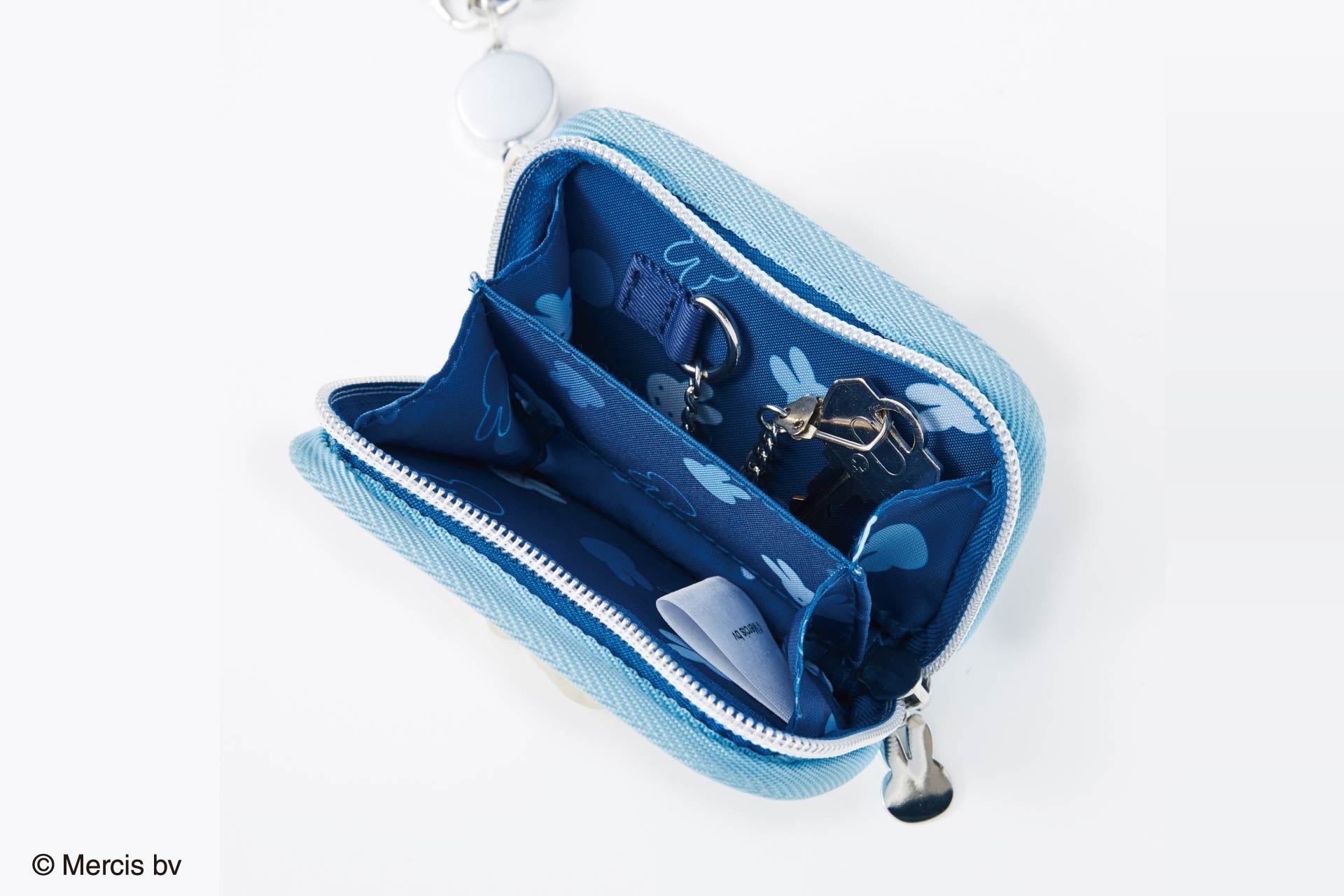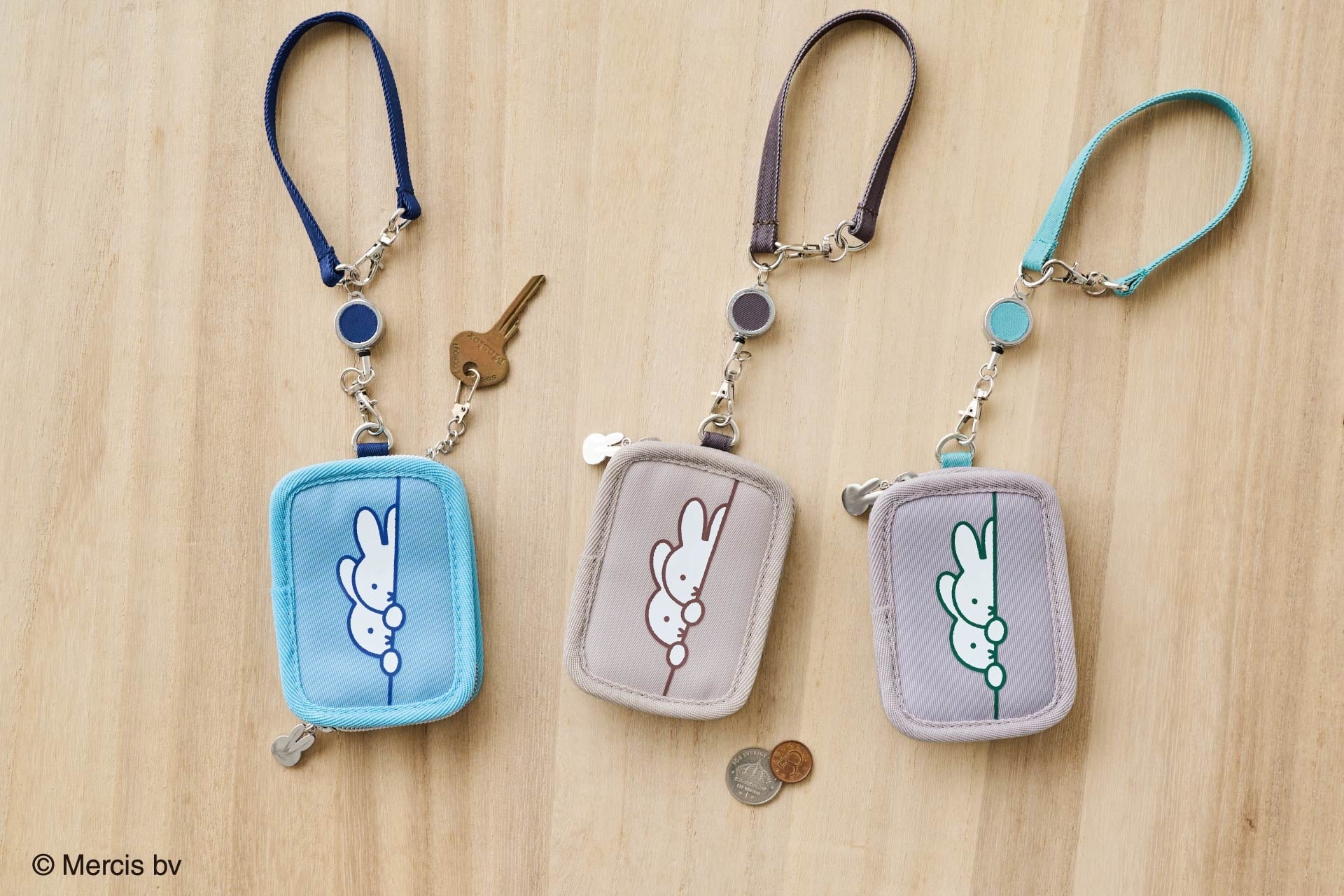 ちらっとのぞくミッフィーのデザインがキュートな、リール付きのパスケースです。改札でのタッチがスムーズにできて、ファスナーを開けると、かぎや小銭も入れられる便利な収納ポケットになっています。内生地やファスナーの引き手部分まで、さりげなくミッフィーになっているのもポイントです。デザインは、〈ブルー〉〈ベージュ〉〈グレー〉の3つのやさしいカラー。持ちやすいシンプルな見た目は、毎日の通勤や通学におすすめです。