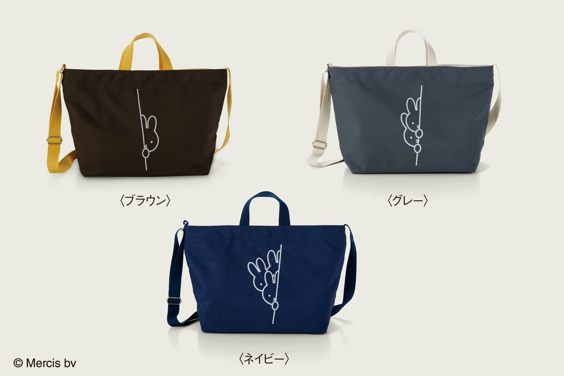 デザインは、〈ベージュ〉〈グレー〉〈ブルー〉の3種類です。持ち手と同じカラーの内生地もミッフィー柄になっています。表面はもこもこのさがら刺しゅう、裏面はキュートな刺しゅうのミッフィーがデザインされていて、違った表情が楽しめます。