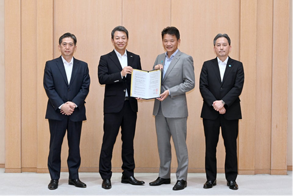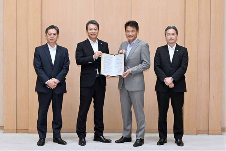(左から)川原副カンパニー長、丹羽常務執行役員、宮坂副知事、児玉担当局長