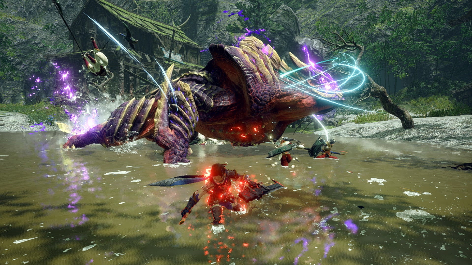 モンスターの異変を調査する観測拠点「エルガド」を中心に、王国最大の脅威「王域三公」と呼ばれる新たなモンスターをはじめ、亜種モンスターやシリーズからの復活モンスターが続々登場。『モンスターハンターライズ』に登場したモンスターもマスターランクのクエストでは追加アクションやバランス調整により、より違った狩りを楽しめる。