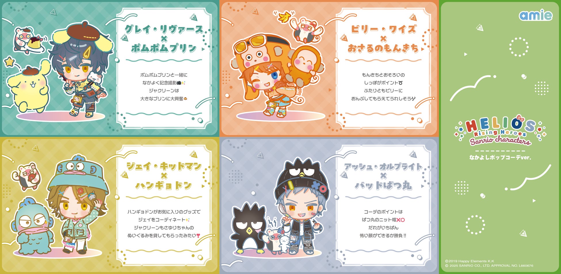 『HELIOS Rising Heroes×サンリオキャラクターズ』amie描き起こしミニキャラクターデザインを使用したコレクションカードが登場!