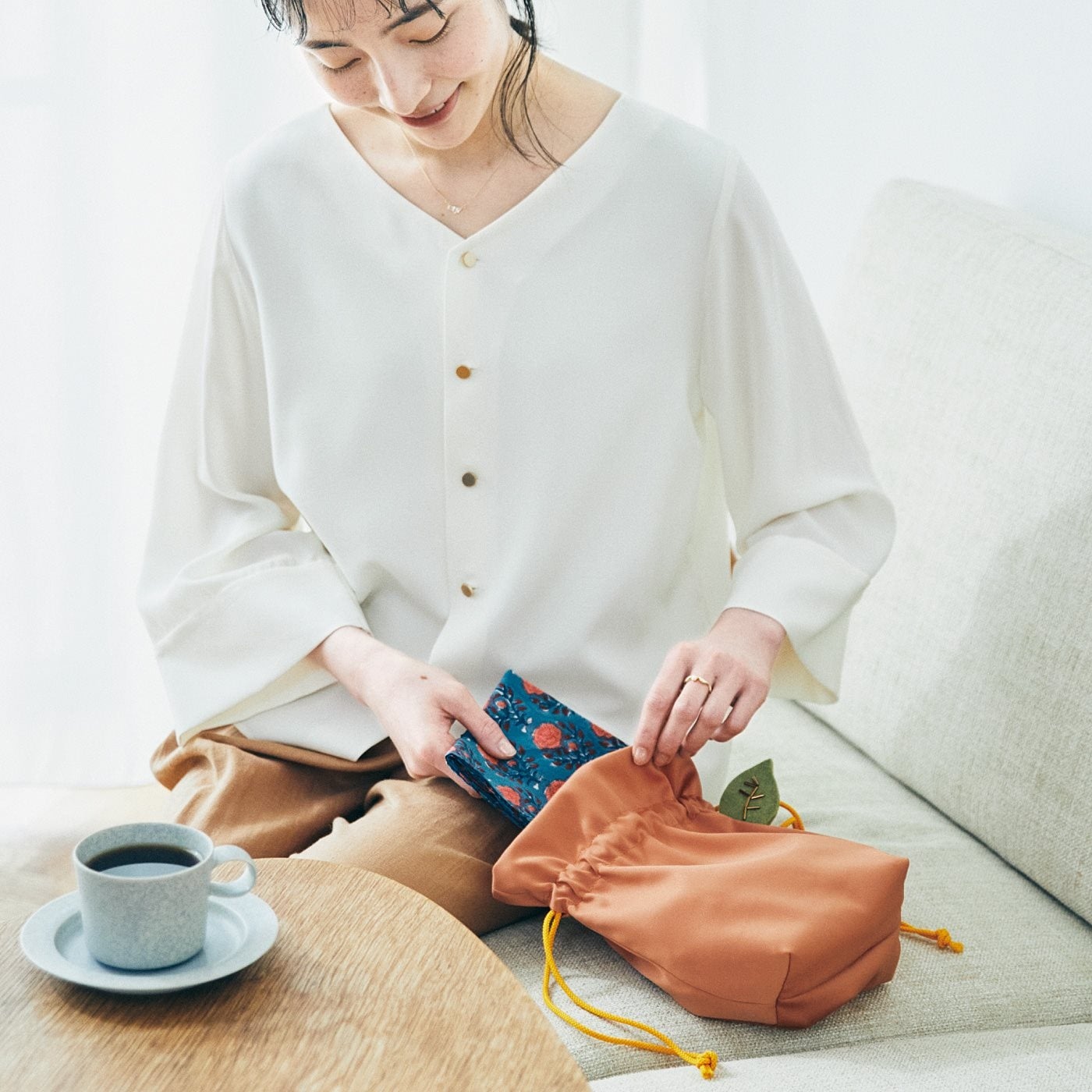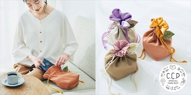 繊細な手仕事のきらめきと上品なデザインが魅力の「きらりとひかるビーズ刺しゅうの葉っぱがかわいい 花咲くきんちゃくポーチ」がフェリシモC.C.Pから登場!