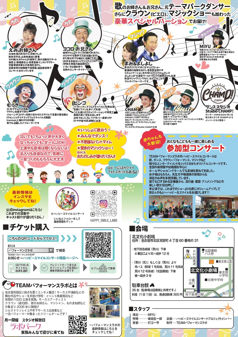 TEAMパフォーマンスラボ主催、みんなでたのしむ!おやこでうたおう!!『ハッピースマイルコンサート』が2025年7月26日 (土) に名古屋市北文化小劇場(愛知県名古屋市北区志賀町4-60-31)にて開催されます。