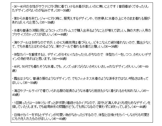 目的:会員の「水着」に対する意識調査と「お悩み」や「要望」についての把握