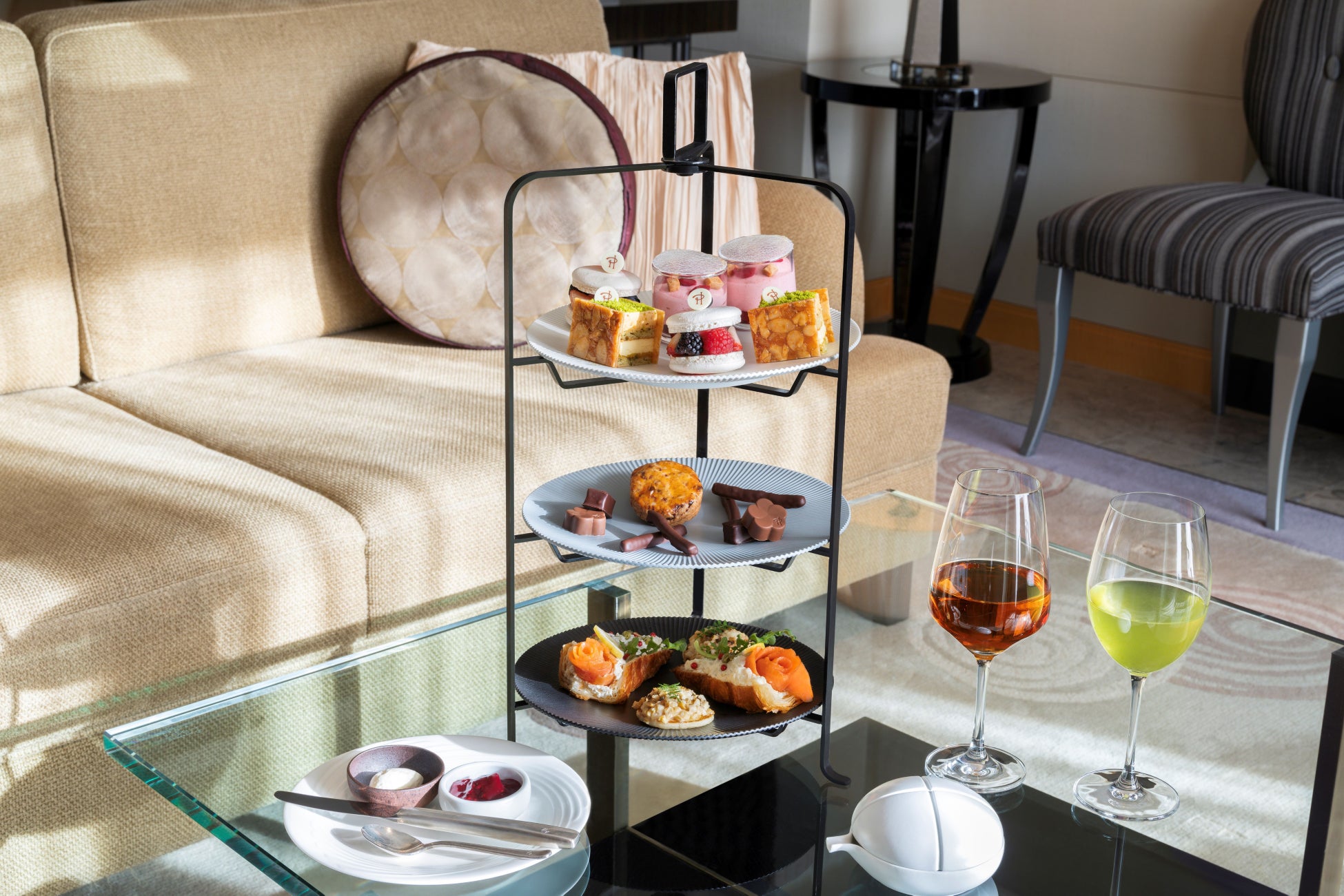桜が咲き始める日本庭園のイメージに相応しい、フランス語でまさに「日本の園」を意味する”ジャルダン・ジャポネ”と名付けられたケーキなど、見た目にも華やかなスイーツ&セイボリーを一堂に味わうことが出来ます。