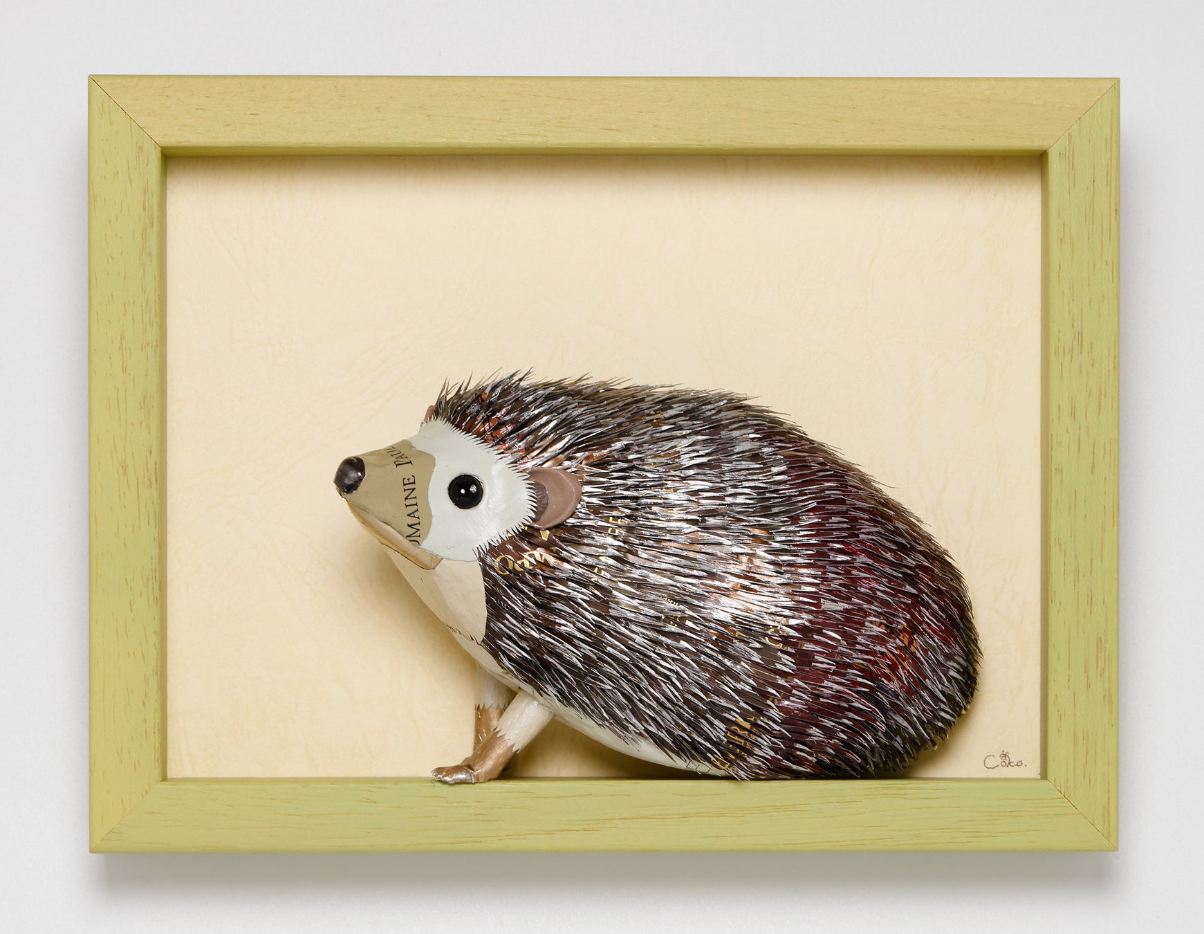 本来は廃棄されるはずのワインのキャップやコルクを使い、着色をせず素材の色をそのまま残した立体作品を制作。