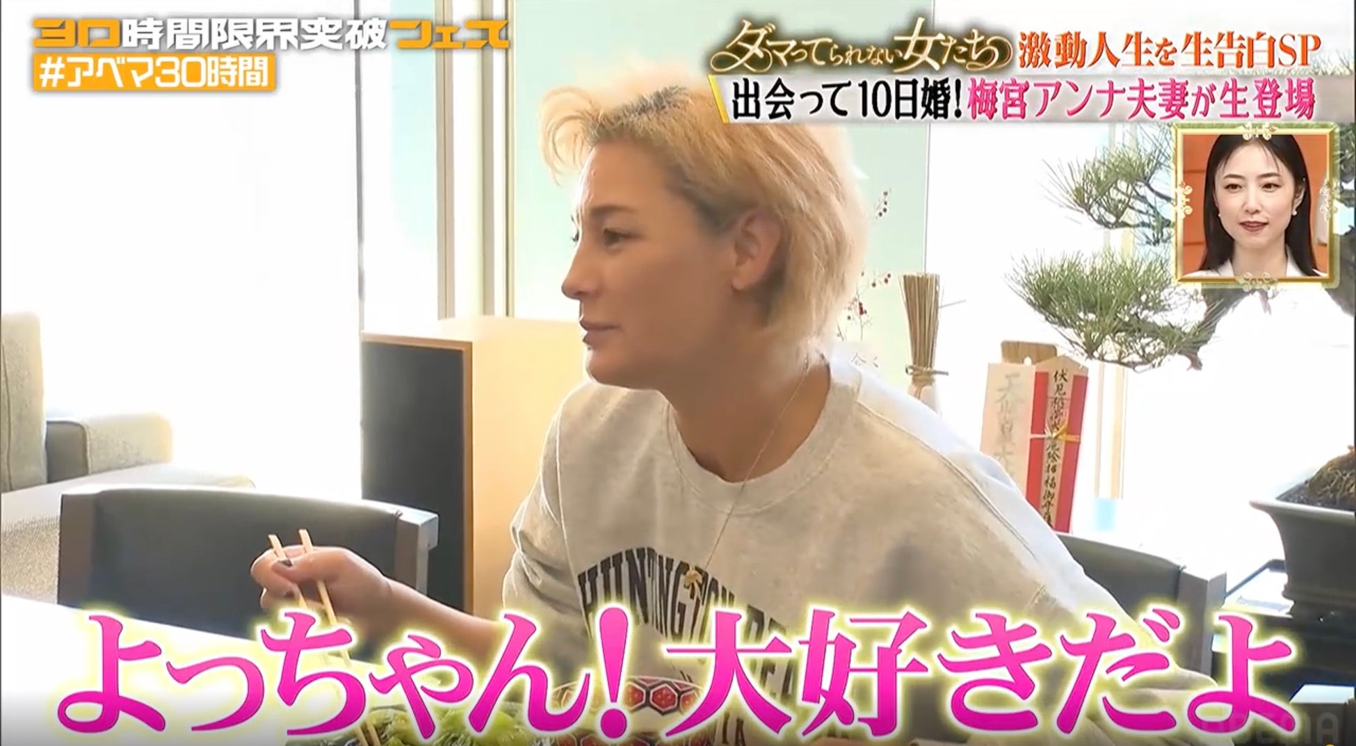 番組では2年前に乳がんステージ3Aを公表し、大きな反響を呼んだ梅宮アンナの新婚生活に密着。昨年5月に出会ってわずか10日での電撃結婚した、世界的ブランドの空間演出やアートディレクションを手がける夫・世継恭規さんとの新婚生活に初潜入しました。