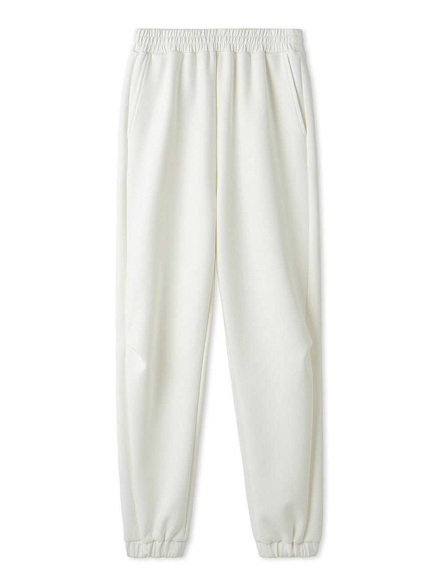 裾がゴム仕様のジョガータイプのパンツ、ウエストもゴムのためラクに履けて動きやすいパンツです。後ろのポケットにダブルネームのロゴをシルバーでプリントし、キャッチ―さもプラス。