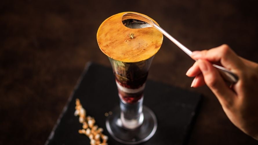 満ちゆく月を愛でながら、季節の移ろいを一皿と一杯に閉じ込めたおとなの甘味とお酒をお楽しみいただけます。静かに揺れるすすきと月明りの中で、秋の鎌倉に酔いしれるひとときに夜空を眺めながら、ゆるやかに満ち欠けを繰り返す月を想う。そんなひとときに寄り添うのは、秋の夜に浮かぶ〝月〟をモチーフにした美しい〆パフェと、茜色に染まる月と夜空をイメージしたオリジナルカクテル茜月(あかねづき)。月が替わるように、味わいも移ろう甘味と酒の余韻を、鎌倉プリンスホテルの「ほろ宵月バー」でご堪能ください。