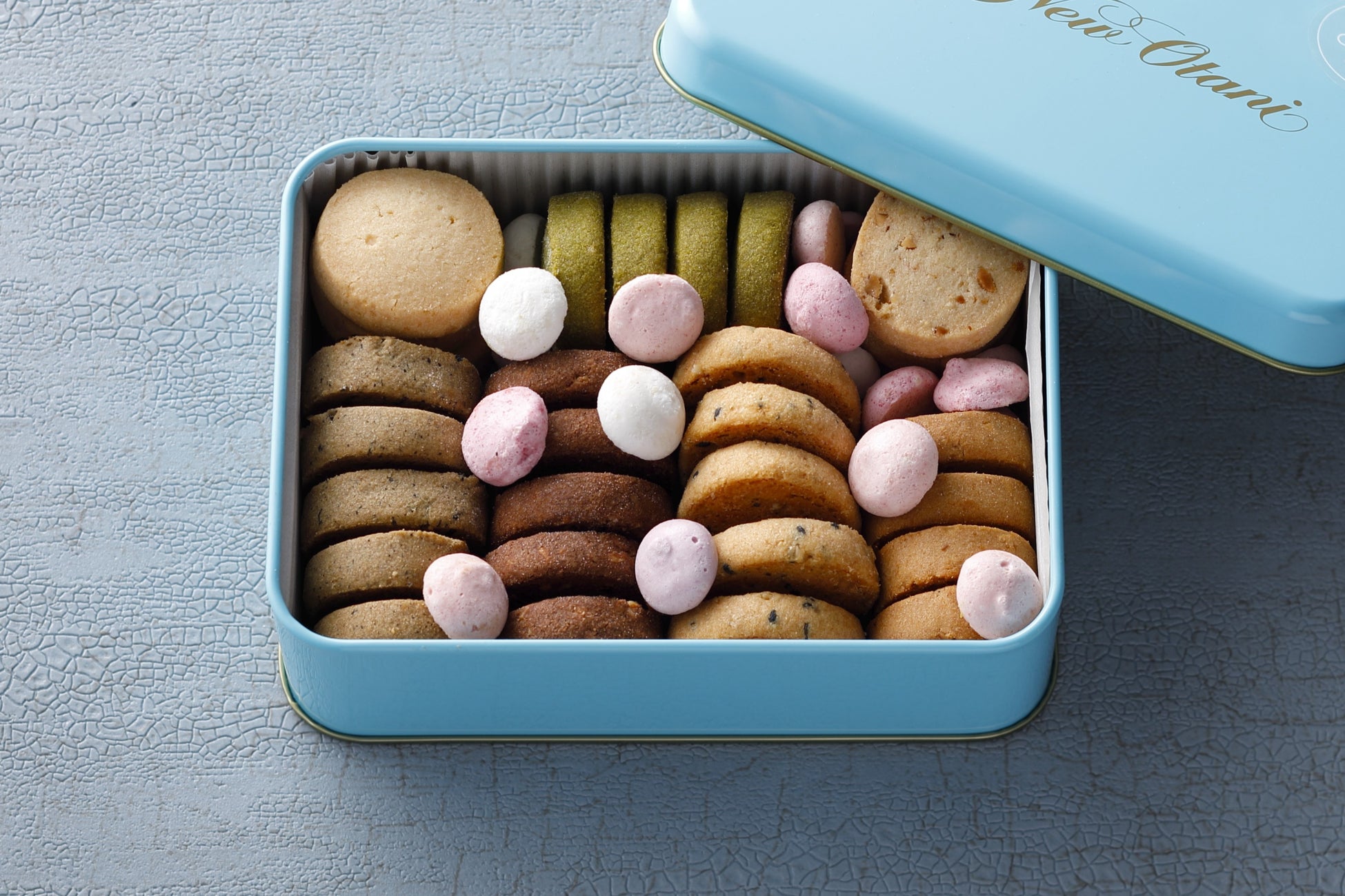 お祝いやギフトに人気の、鮮やかな"オータニブルー"のクッキー缶シリーズ