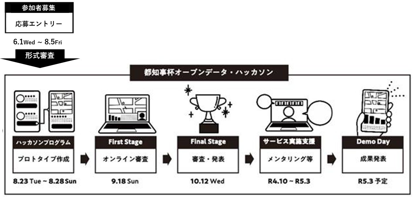 この取組を加速するため、昨年度に引き続き、第2回目となる「都知事杯オープンデータ・ハッカソン2022」を下記の通り開催します。