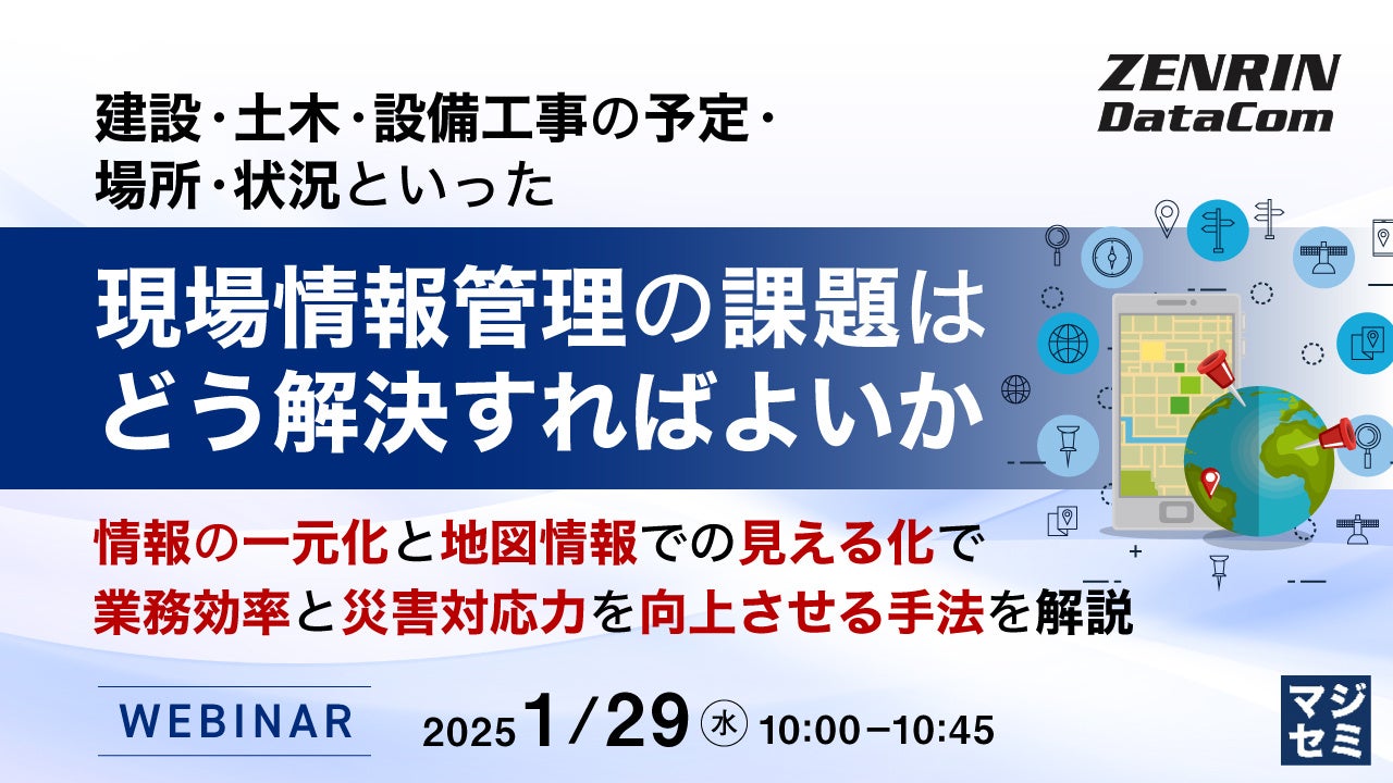 マジセミ株式会社は「建設・土木・設備工事の予定・場所・状況といった現場情報管理の課題はどう解決すればよいか」というテーマのウェビナーを開催します。