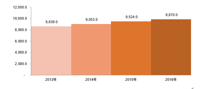 一人当たりの米国医療費、(USD)、2013ー2016年
