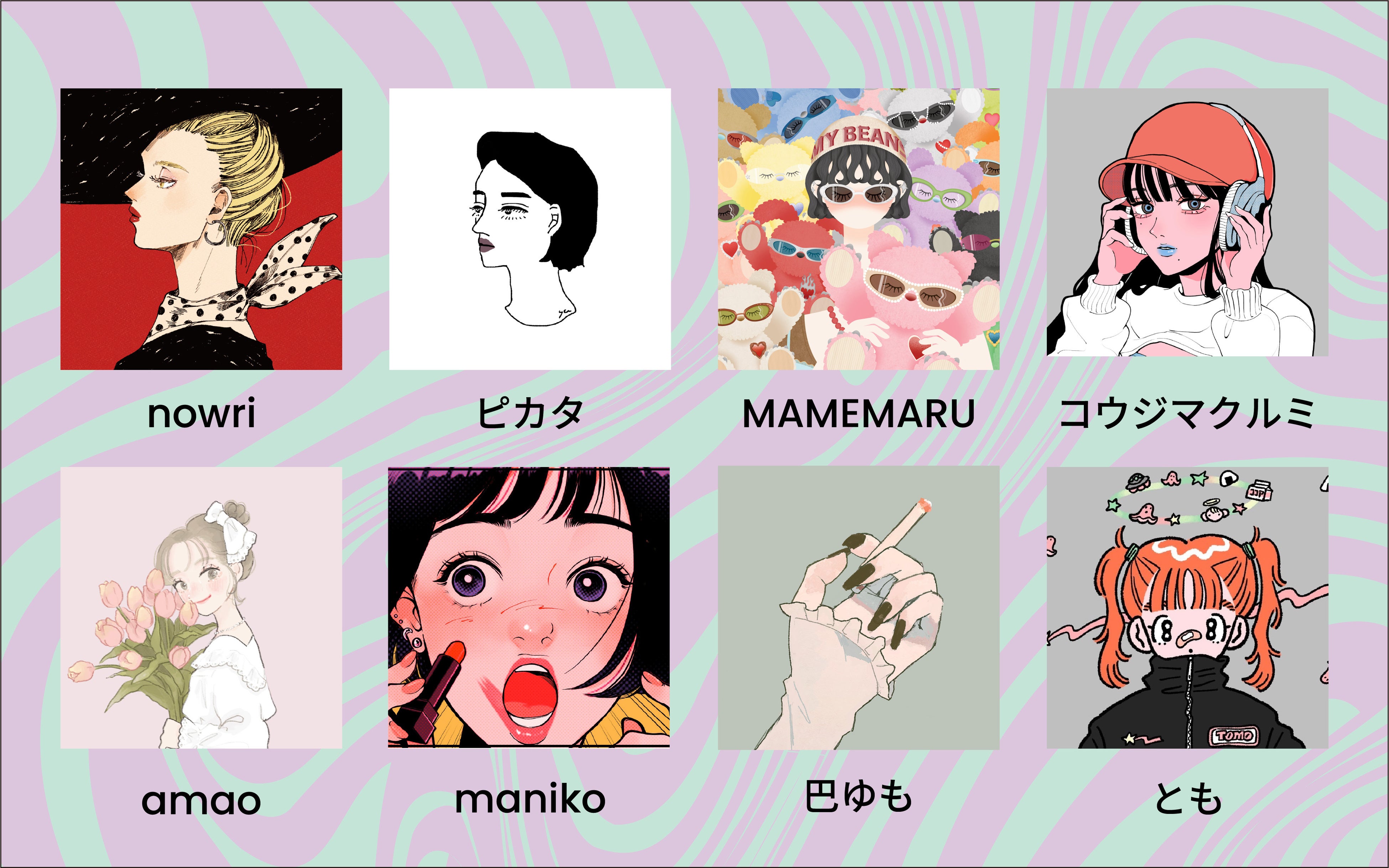 nowri (なうり)/ ピカタ / maniko / コウジマクルミ / amao / とも / 巴ゆも / MAMEMARU