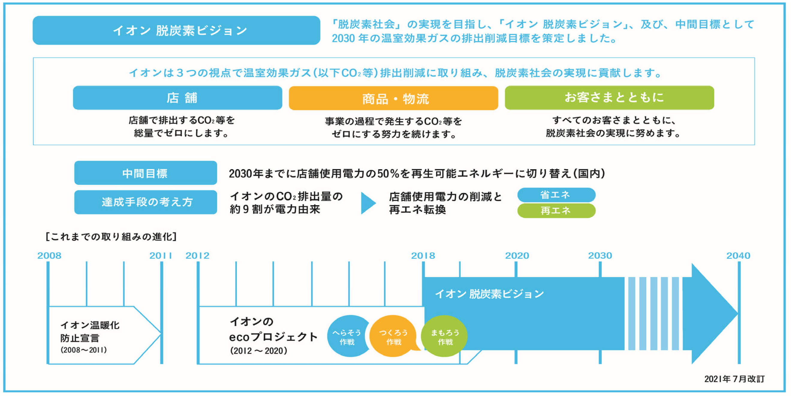 イオンは、今後もグループをあげて脱炭素社会の実現に向けて取り組んでまいります。