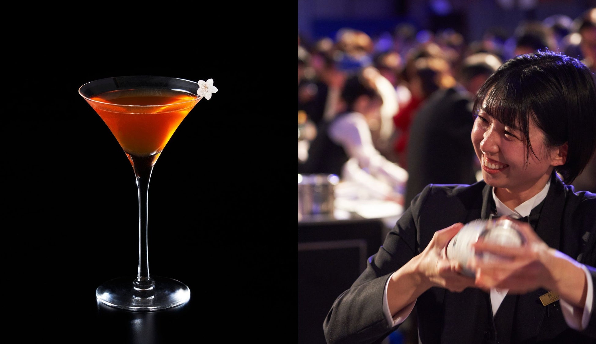 これまで数々のコンペティションで受賞経験を持つトップバーテンダーを輩出してきた、ホテルニューオータニ「バーテンダーの登竜門」ともいえる本コンペティション。全国にあるグループホテルで、昨年から出場者の選定や予選を行い、2025年2月11日(火・祝)に決勝戦を迎えました。全国の「カクテル愛好家」の目の前で、自身の作品を実演し、参加者の投票でNo.1を決定する「参加型コンペティション」。今回のコンペティションでは、多様化するライフスタイルにお応えできるよう「アルコール部門」に加えて、新たに「ノンアルコール部門」が誕生。当日は500名を超える来場者に、バーテンダーが“進化”をテーマに思い思いのカクテルを提供し、参加者は1人あたり36杯のカクテルを飲み比べ、厳正なる審査が行われました。