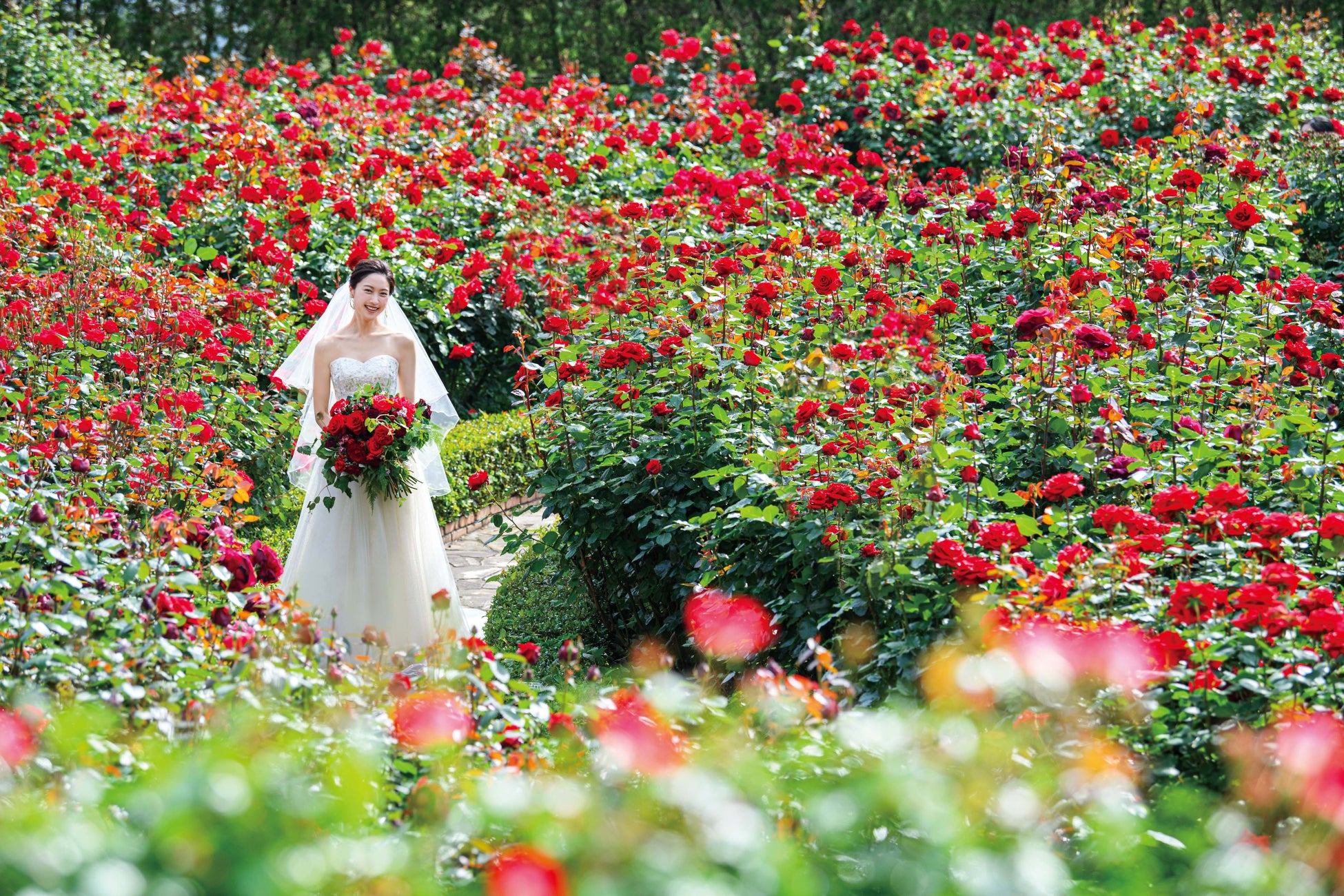 期間中は、ガーデンチャペルとしてもオープン。純白のドレスを身に纏い、3万輪の薔薇に囲まれて執り行う挙式は、忘れられないひと時をお過ごしいただけます。ウエディングフォトや結婚式当日に行うファーストミートのスポットとしても人気を博しています。