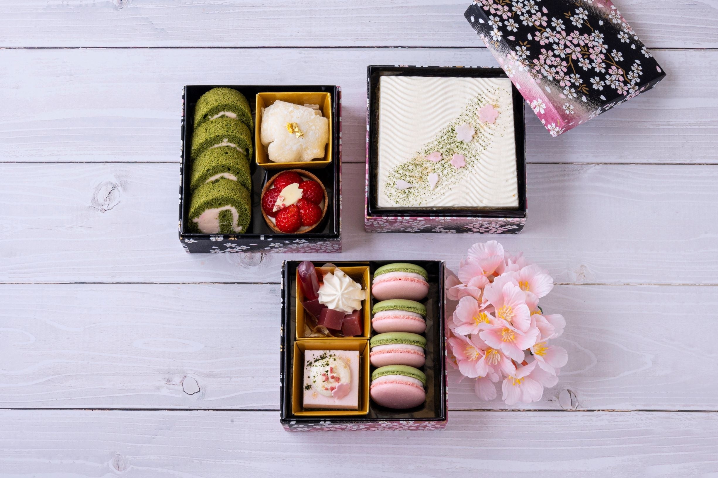 「SWEETS BOX」は“季節の重箱シリーズ”として2021年より定期的に販売をしているテイクアウト商品です。四季やコラボレーションのテーマにあわせ、パティシエの遊び心と旬の食材を取り入れた内容で好評をいただいております。今回のSWEETS BOXはお花見での手土産や春のお祝いのシーンを盛り上げるスイーツであるようにと、日本国内で咲き誇る桜をモチーフにしました。春の香り漂う桜フレーバーのスイーツたちと相性の良い抹茶、旬のイチゴを使った和と洋のお菓子を、桜のデザインをあしらった華やかな3段の重箱に7種類詰め込んでいます。