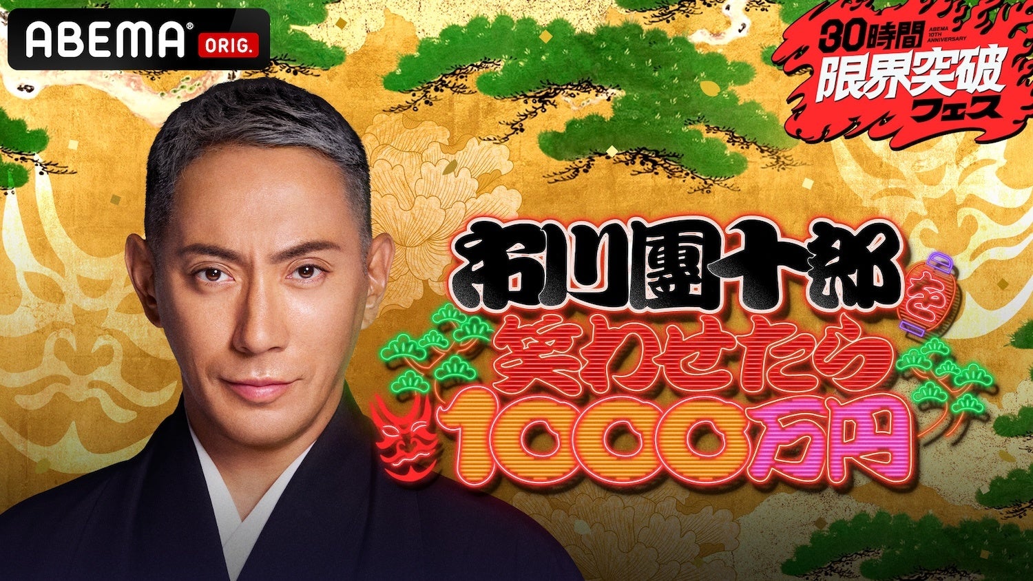 新しい未来のテレビ「ABEMA(アベマ)」は、2026年4月11日(土)に開局10周年を迎えました。「ABEMA」10周年を記念し、4月11日(土)午後3時から12日(日)夜10時にわたり、特別番組『30時間限界突破フェス』を生放送。このたび、「市川團十郎を笑わせたら1000万円」を放送いたしました。