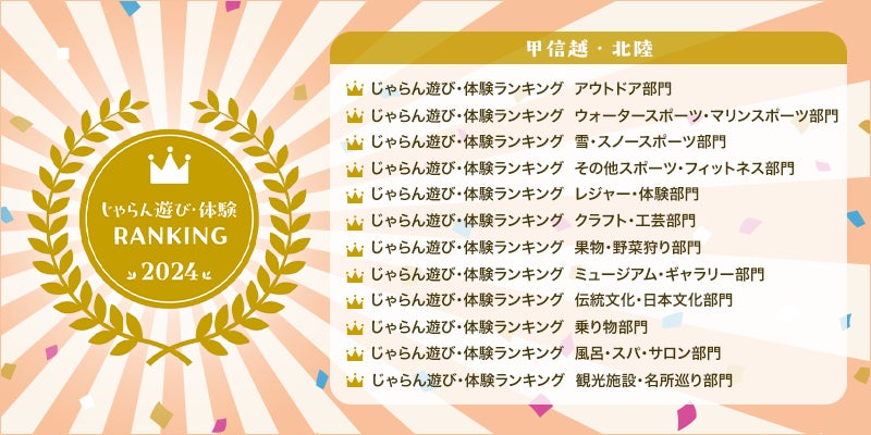 「じゃらん遊び・体験ランキング2024」甲信越・北陸ブロック発表