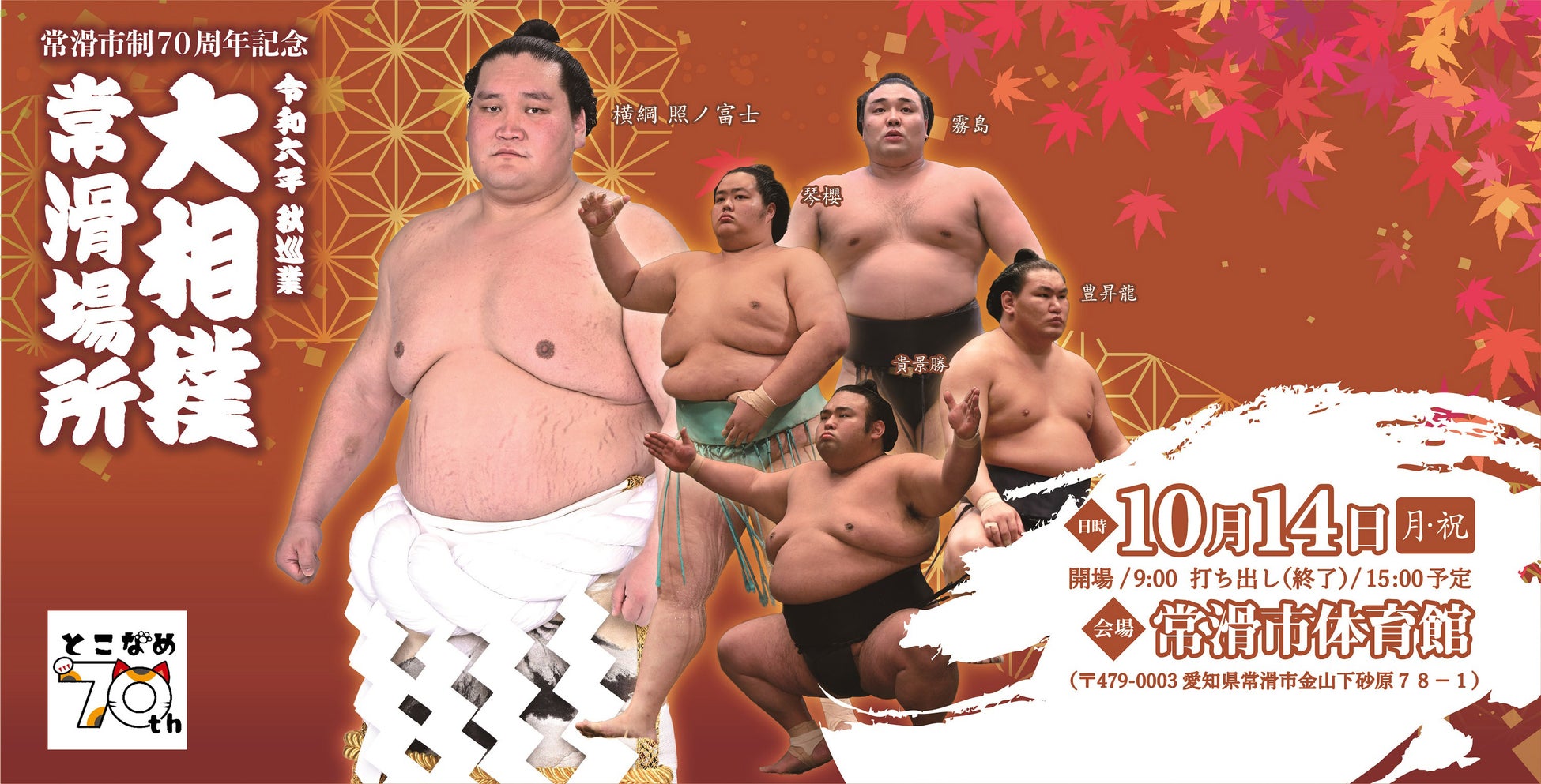 常滑市制70周年記念として、「大相撲 常滑場所」を、2024年10月14日(月・祝)に常滑市体育館にて開催致します。