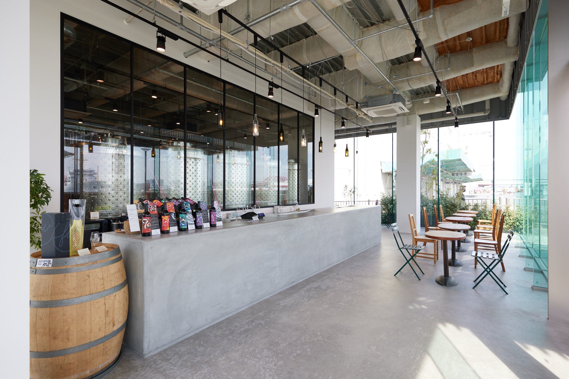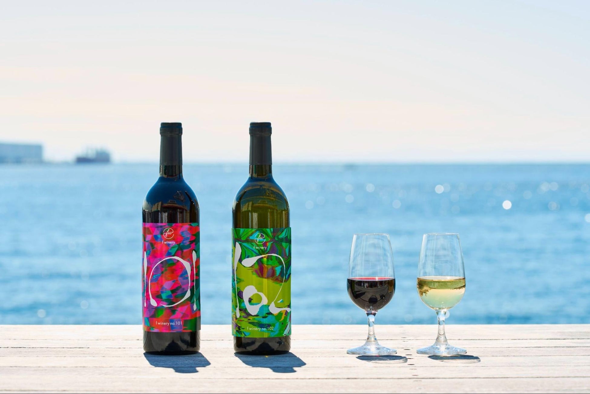 フェリシモ本社屋1階にあるワイナリーで醸造した新品種2種のワイン(赤と白)とフェリシモがセレクトしたスイーツ3種を、海を目の前に眺める都市型ワイナリー「f winery」で用意しています。フェリシモオリジナルワインとフェリシモがセレクトしたスイーツのマリアージュを楽しめます。