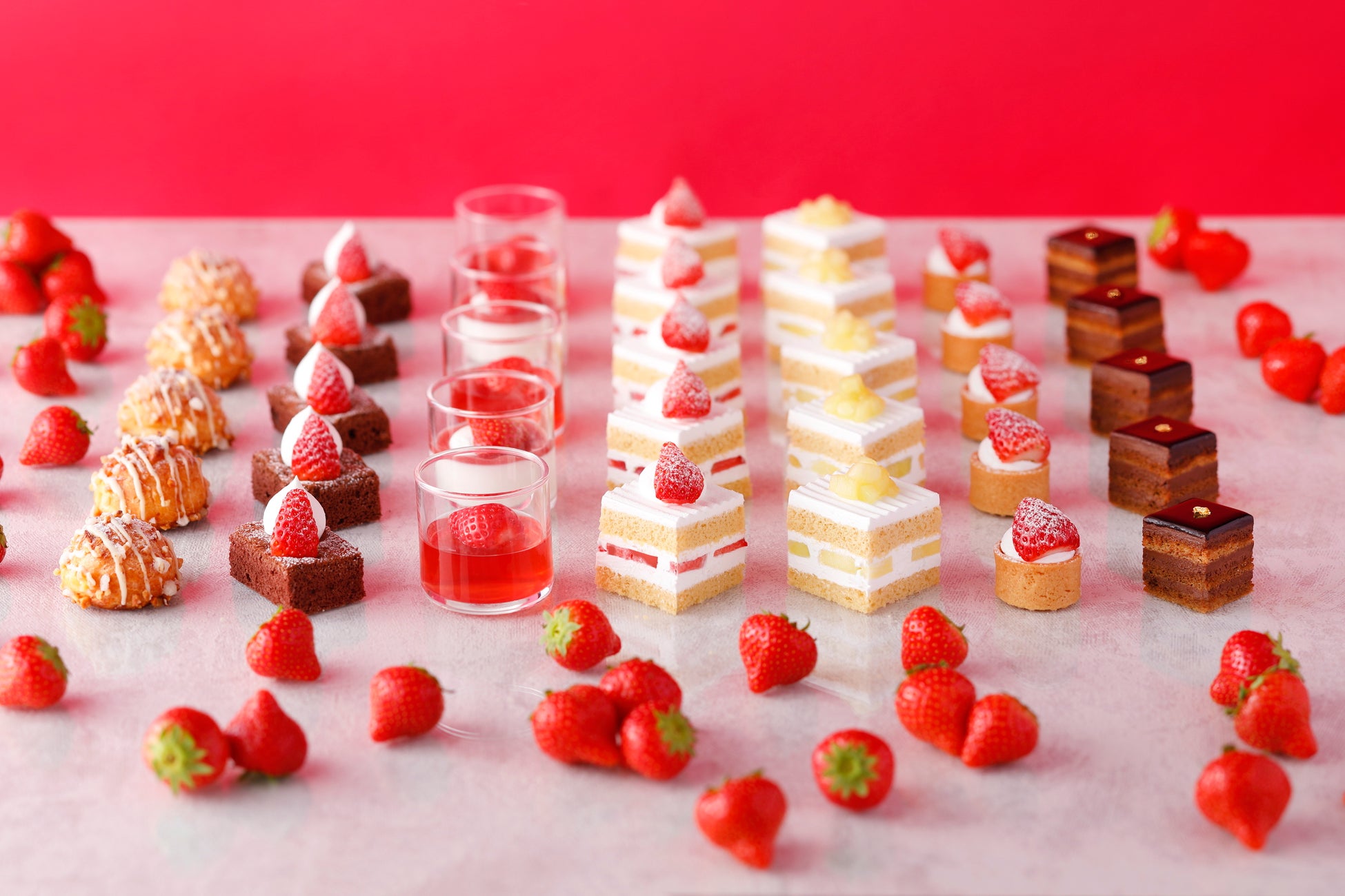 『Wedding Preview “桜”』にご来館いただいたカップルには、関西随一の贅沢ビュッフェ『スーパースイーツビュッフェ2025 ~ホテルでいちご狩り~』の平日ご利用券(大人 平日¥6,500)をプレゼント。「パリ」「ニューヨーク」「ソウル」、各国の代表スイーツを一堂にお愉しみいただける、今回限りのプレミアムで甘いひとときをぜひお愉しみください。