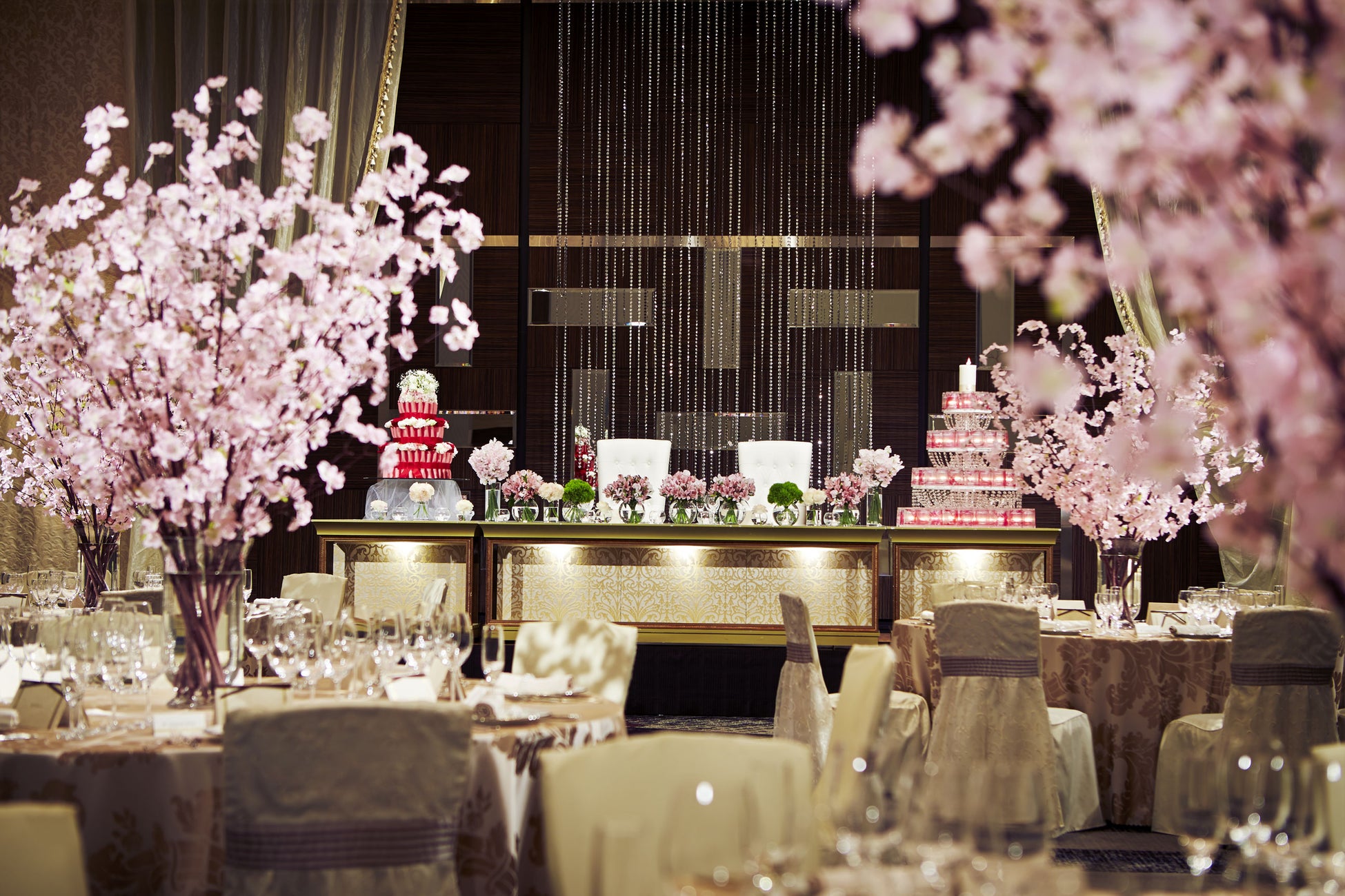 そんな“春婚”をはじめとする華々しい結婚式を控えるお二人のために、『Wedding Preview ”桜”』では、会場に満開の桜をご用意し、どこよりもゴージャスな空間を演出。また、大人数での披露宴はもちろん、近年のトレンドの一つでもある少人数での「家族婚」などもご提案させていただけるよう、幅広い種類のコーディネートルームをご用意しております。